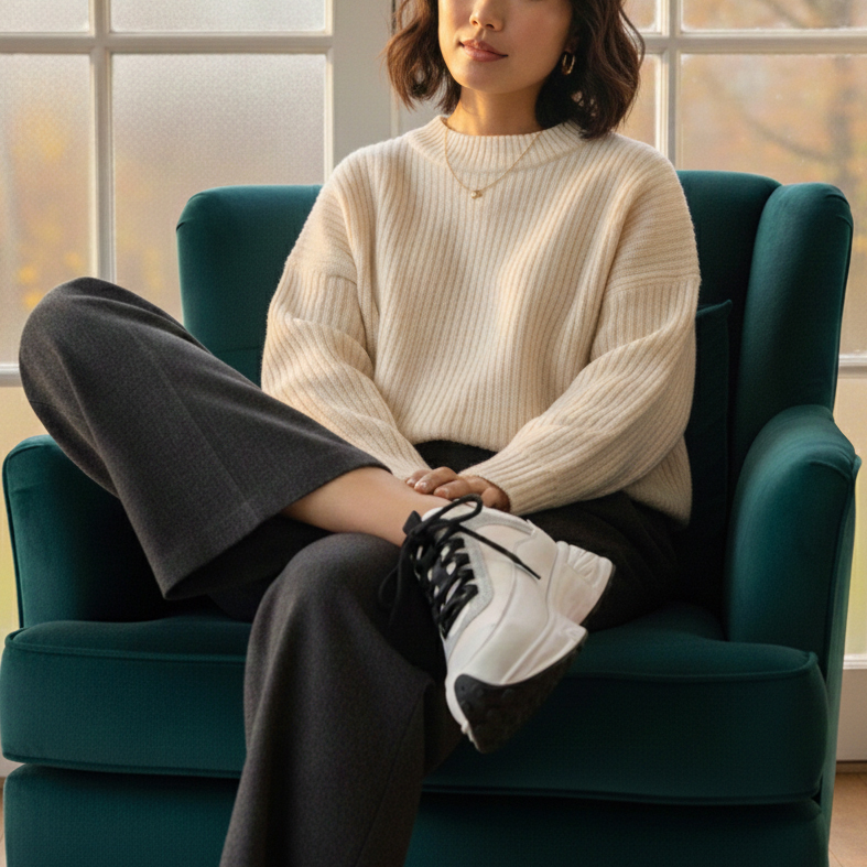 デザインは、カジュアルスタイルにもきれいめコーデにも合わせやすい上品スニーカースタイル。