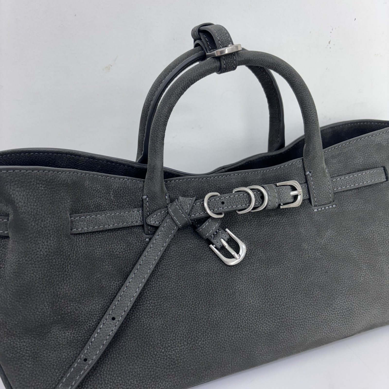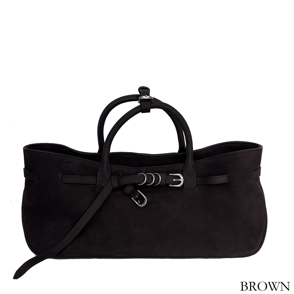 ヴィンテージライクな佇まい。ベルトデザインの牛革バッグ。柔らかな質感が魅力的でヴィンテージショップで見つけたような、こなれた雰囲気が漂うデザインです。バック全体を彩る複数のベルトとバックルが、カジュアルながらもスタイリッシュな印象を与えます。手持ちも肩掛けもできる2WAYタイプで、デイリーユースにぴったり。本革ならではの経年変化を楽しみながら、自分だけのバッグに育てていけます。