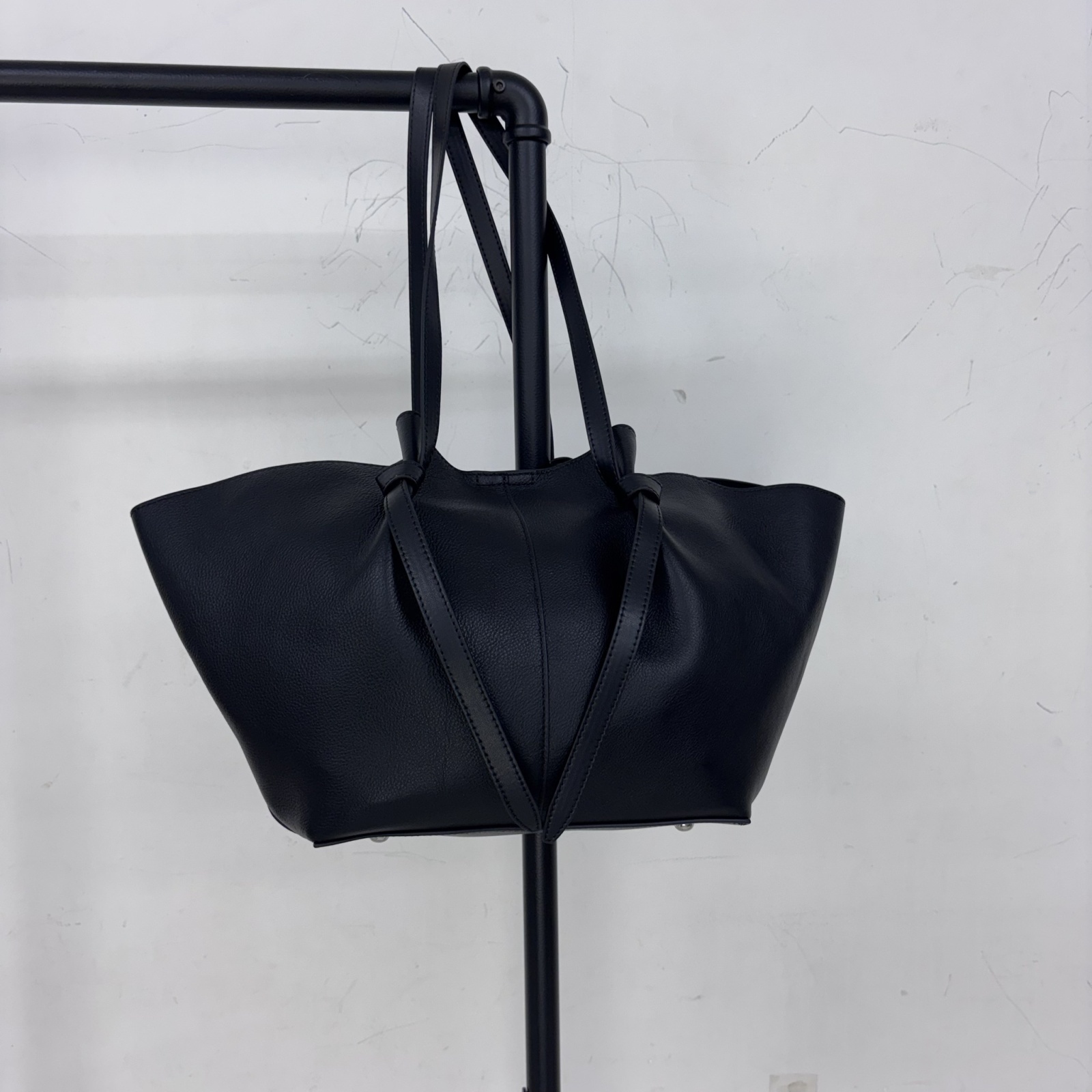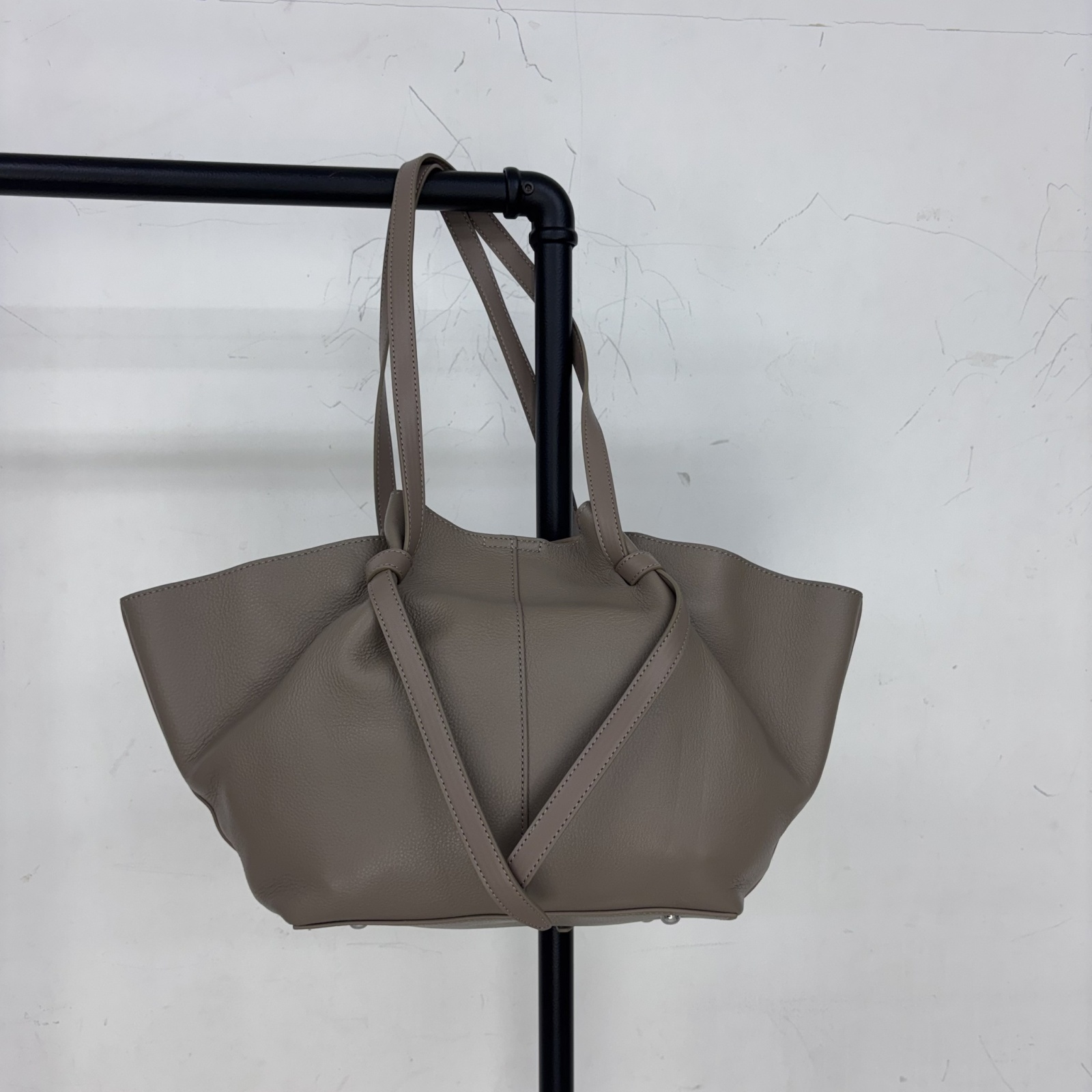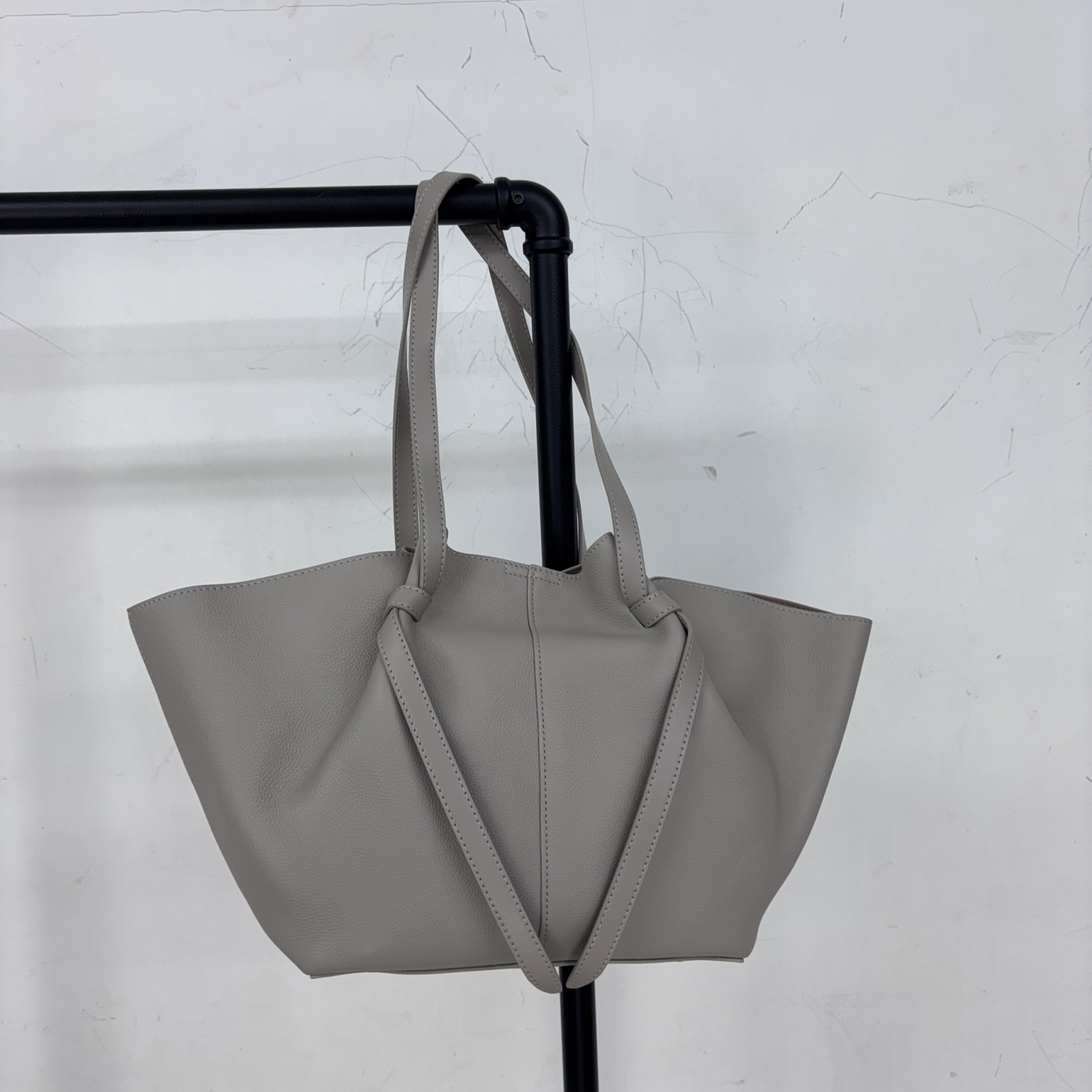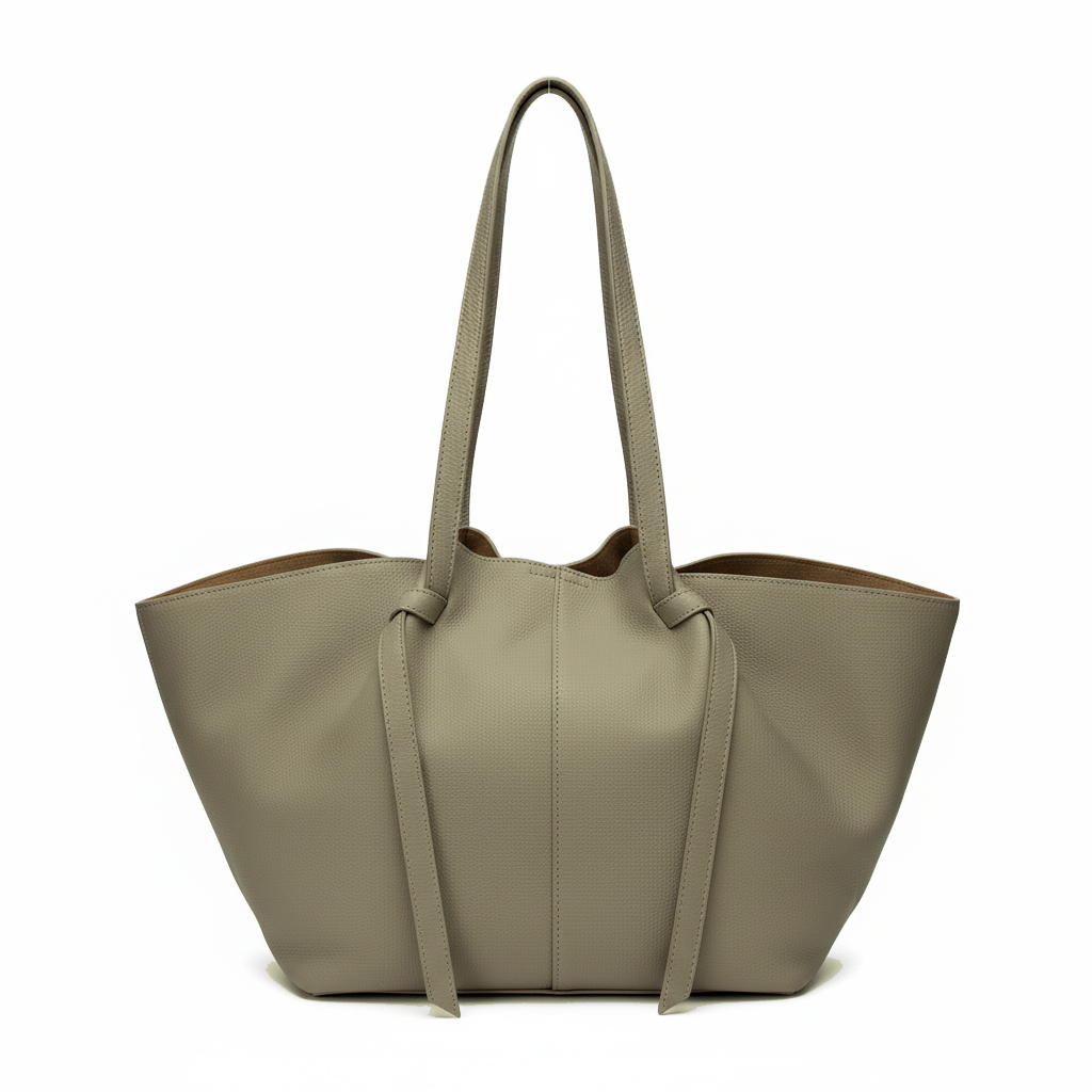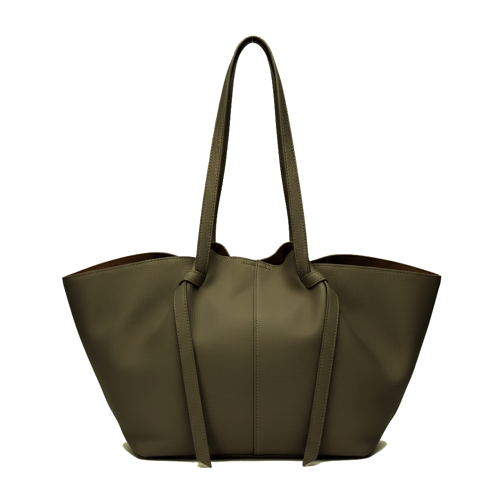 くったりとした柔らかな質感が特徴の、ソフトレザートートバッグ。肌触りの良い素材と、サイドの結び目デザインがワンポイント。シンプルながらも細部にこだわったデザインで、カジュアルにもきれいめにもマッチ。肩掛けいやすいうれしい大容量で500mlペットボトルも縦入れOK。取り出しやすい広めの口と安心のボタン付きで荷物多めの方にもおすすめ。収納に使える同色ポーチつき。