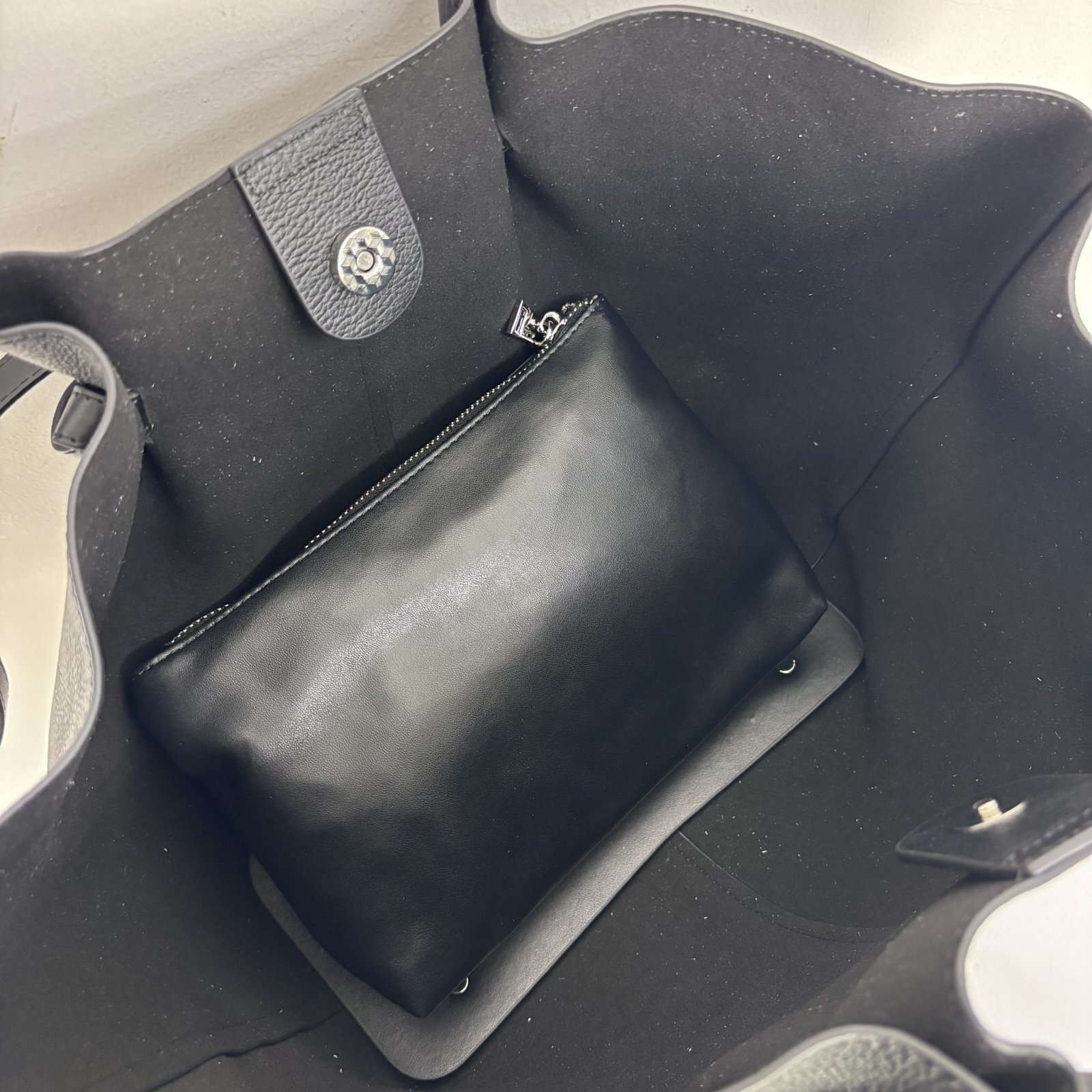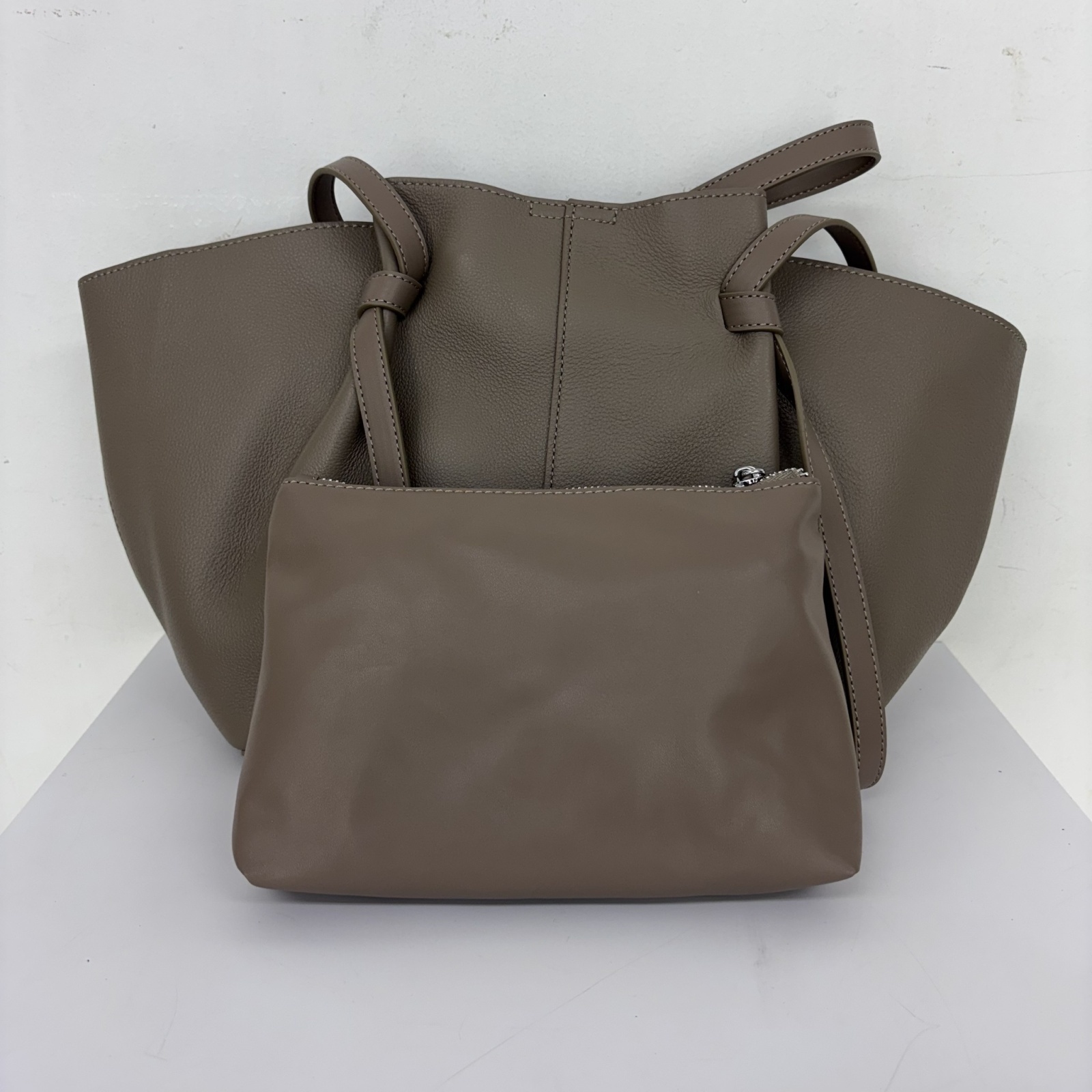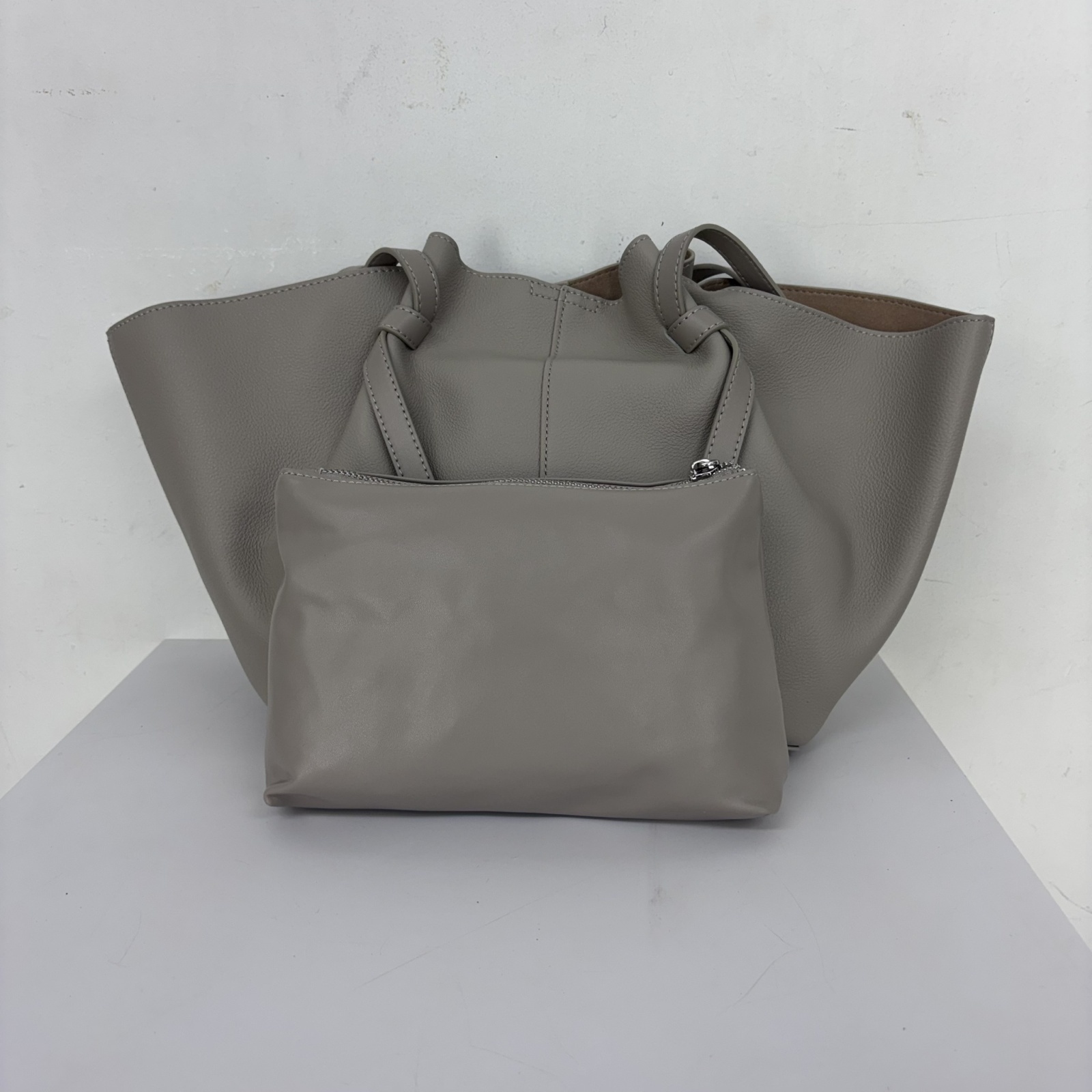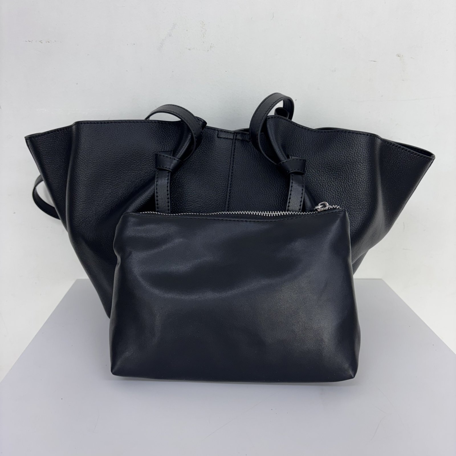 バッグ ソフトレザーのポーチ付きトート/3月上旬配送